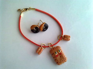 【送料無料】ブレスレット ブレスレットフォームbracciale con orecchinia forma di dolci in porcellana a freddo fatti a mano